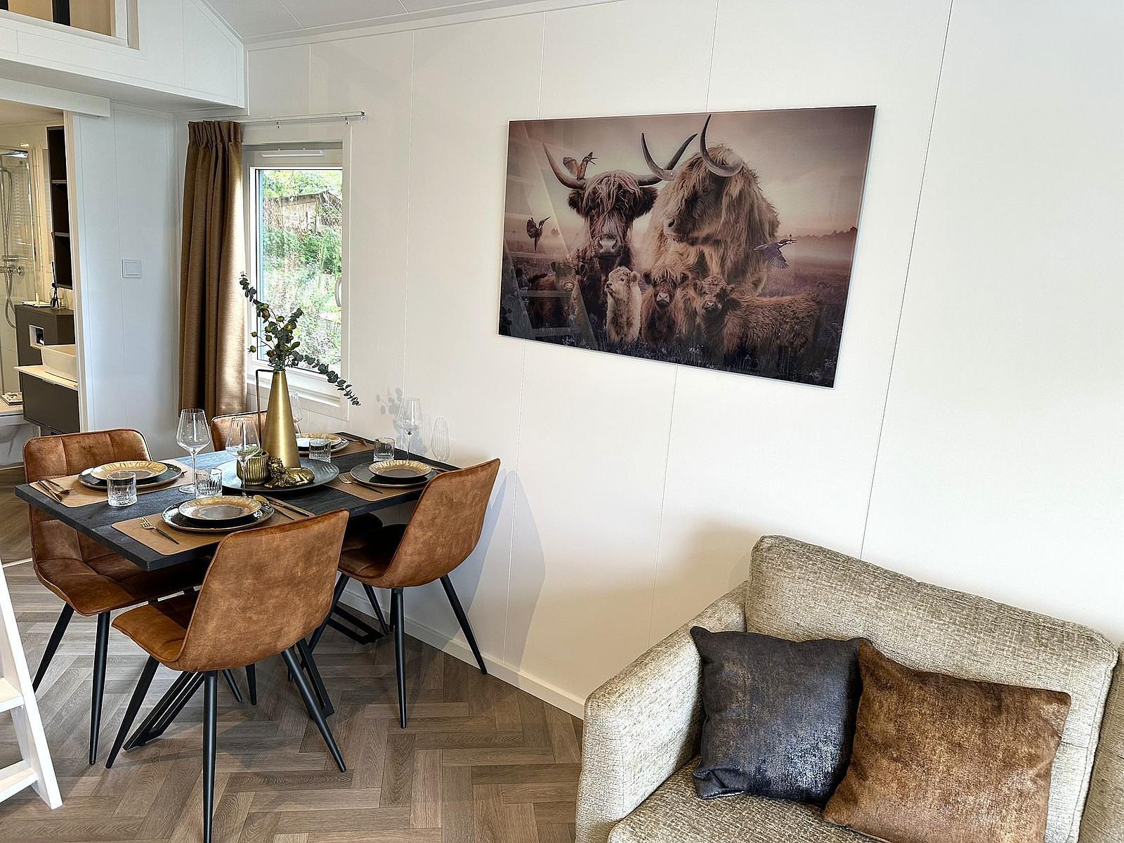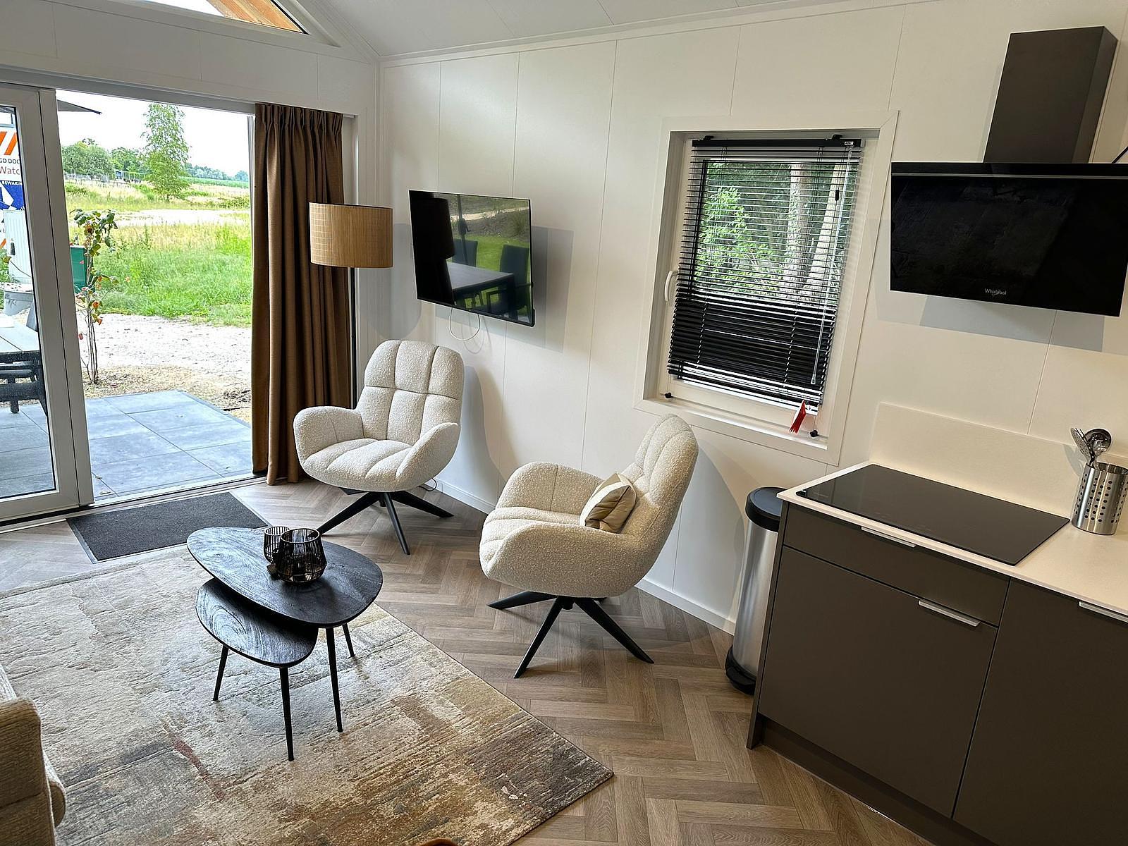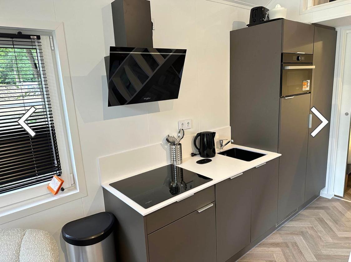 De Forrest Lodge beschikt over een moderne keuken in een stijlvolle kleur. Deze keuken is van alle gemakken voorzien: een 4-pits inductiekookplaat met afzuigkap, combimagnetron, ruime koelkast met vriesvak, afwasbak met kraan en volop kastruimte. Dankzij de slimme indeling is er verrassend veel opbergruimte en werkcomfort. Hier kook je met plezier, of je nu een snelle lunch bereidt of uitgebreid dineert met familie of vrienden – alles is binnen handbereik.