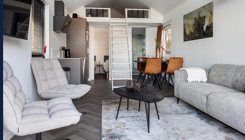 De luxe Forest Lodge 40m2 groot , bied alles wat een vakantiehuis een gast kan bieden en is groter als de afmeting doet vermoeden .
