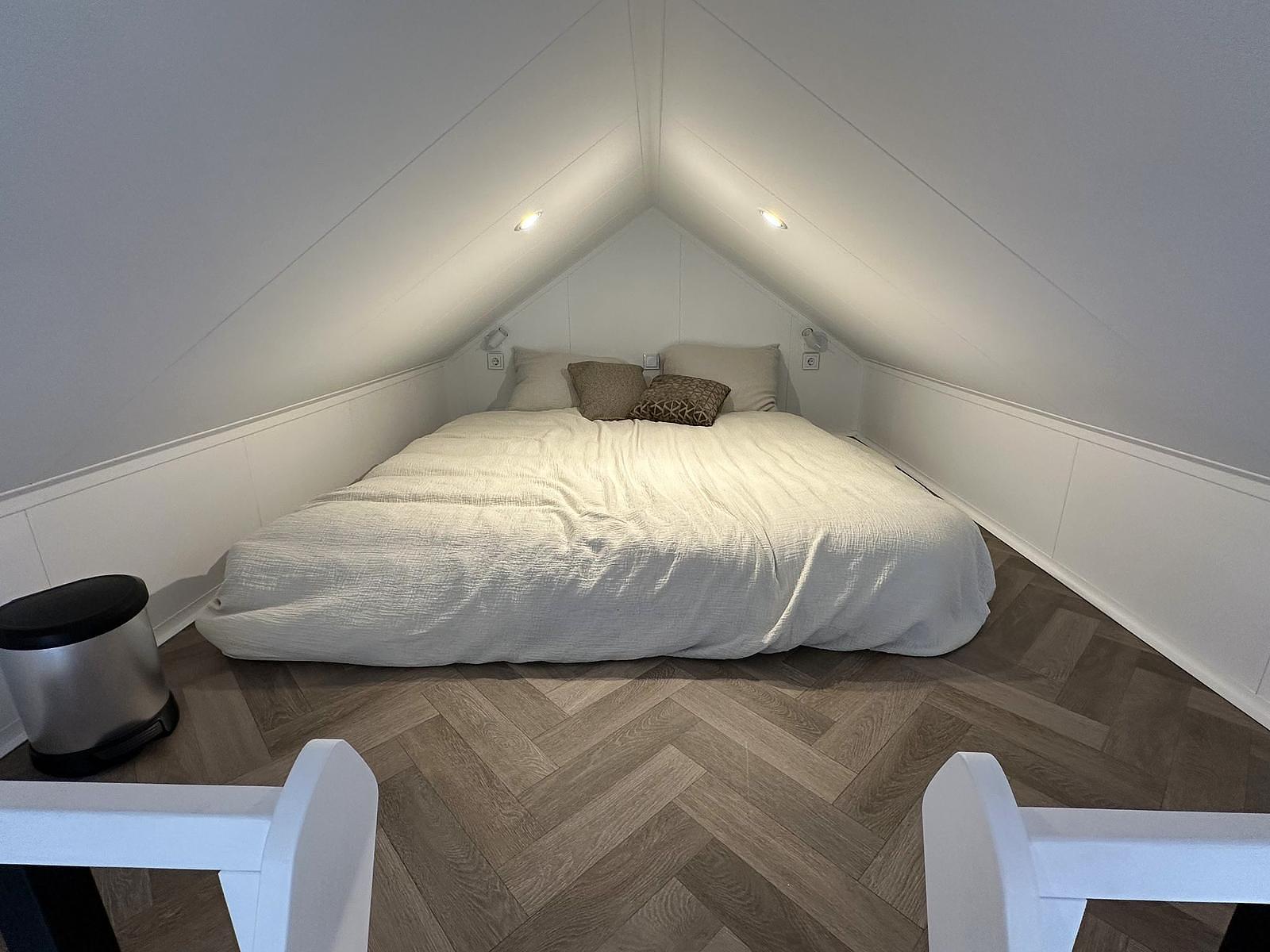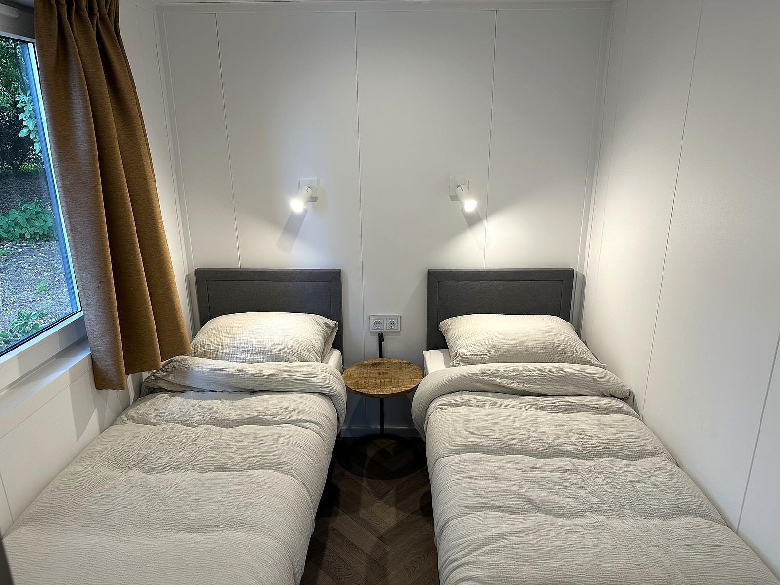 De Forrest Lodge beschikt over twee ruime slaapkamers. Op de begane grond vindt u een comfortabele slaapkamer met twee eenpersoonsbedden, handige zweefkasten, een draai-/kiepraam en een radiator. De tweede slaapkamer bevindt zich op de sfeervolle vide en is uitgerust met een tweepersoonsbed. Vanaf de vide heeft u een mooi uitzicht over de lichte woonkamer. Een slimme indeling met volop comfort – ideaal voor gezinnen of logees.