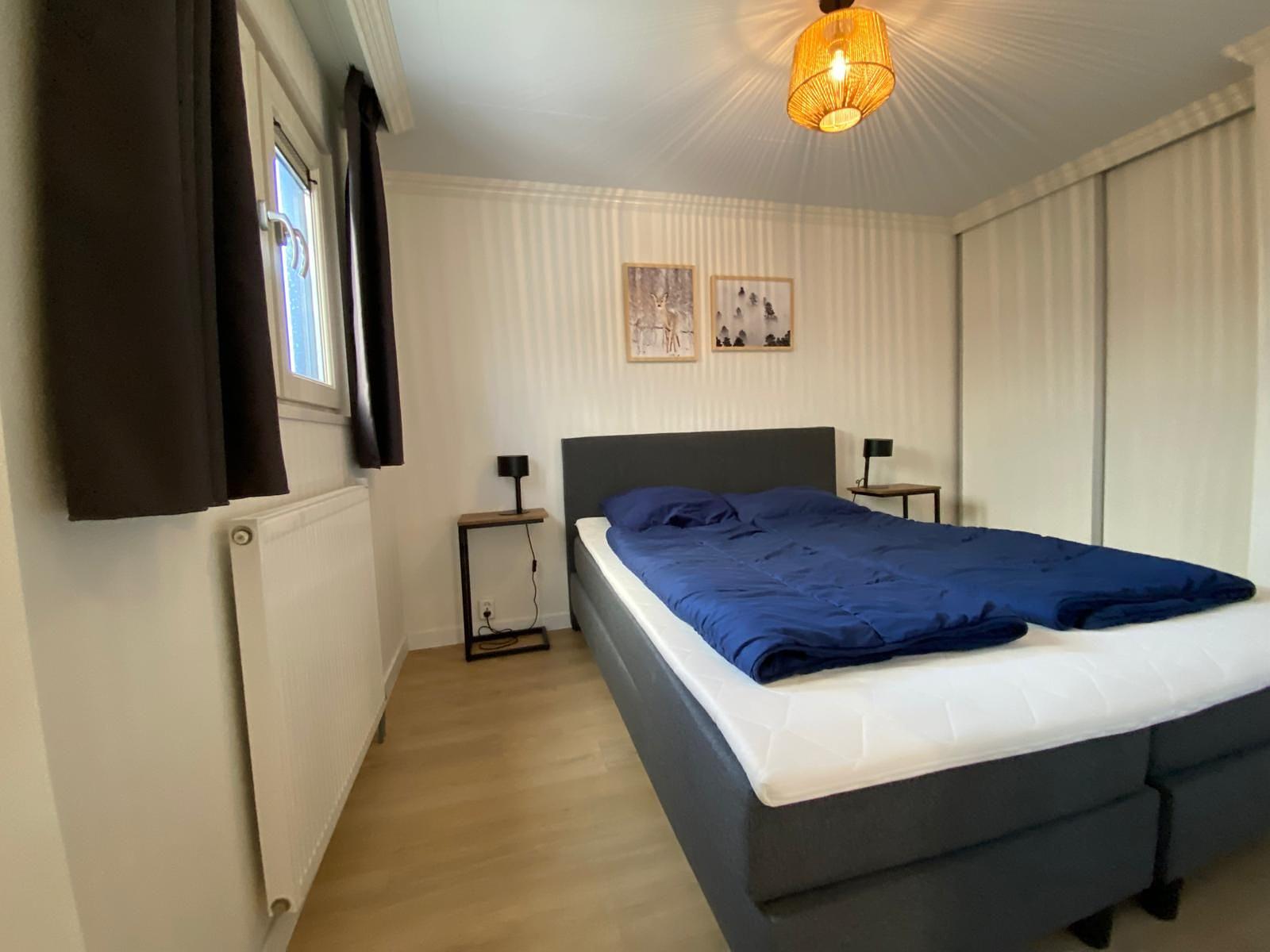 De ruime 2 persoons slaapkamer is voorzien van een grote inbouwkast inclusief schuifdeuren en er is voldoende ruimte voor een groot 2 pers bed.