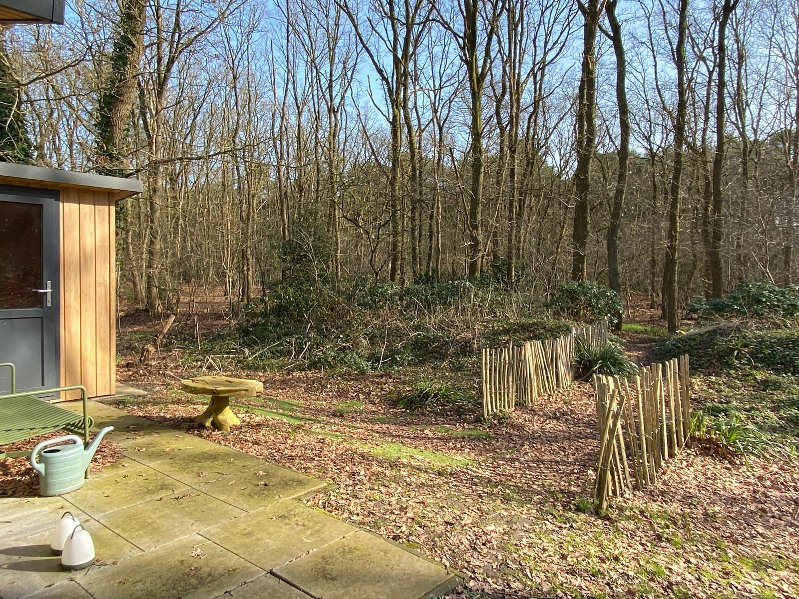 Op het bosrijke perceel staat ook een luxe en goed geisoleerd tuinhuis.