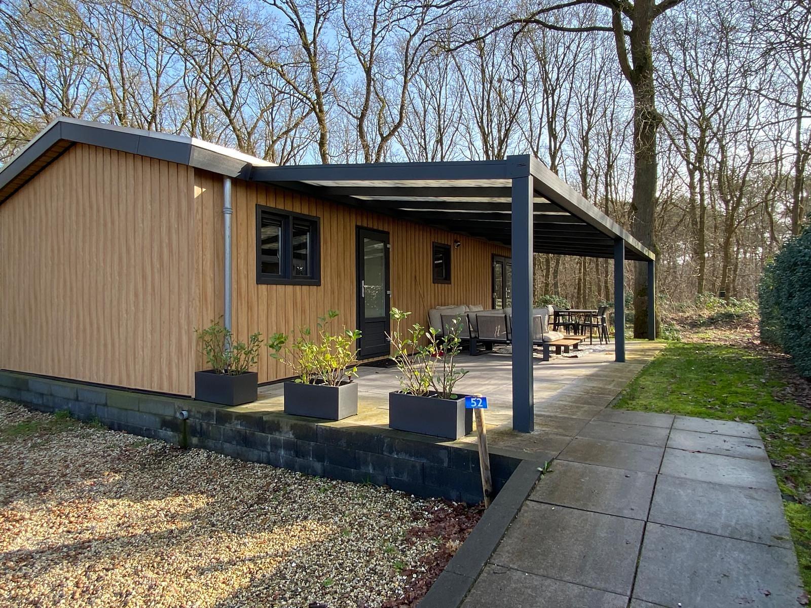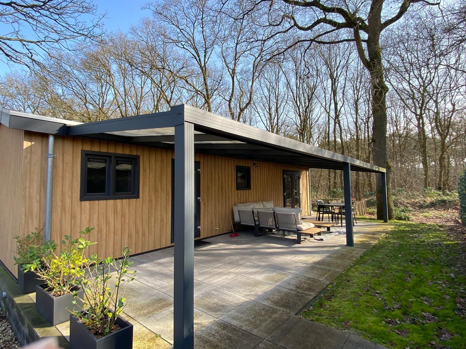 Een luxe overkapping met led-verlichting is aanwezig over de gehele lengte van het vakantiehuis.