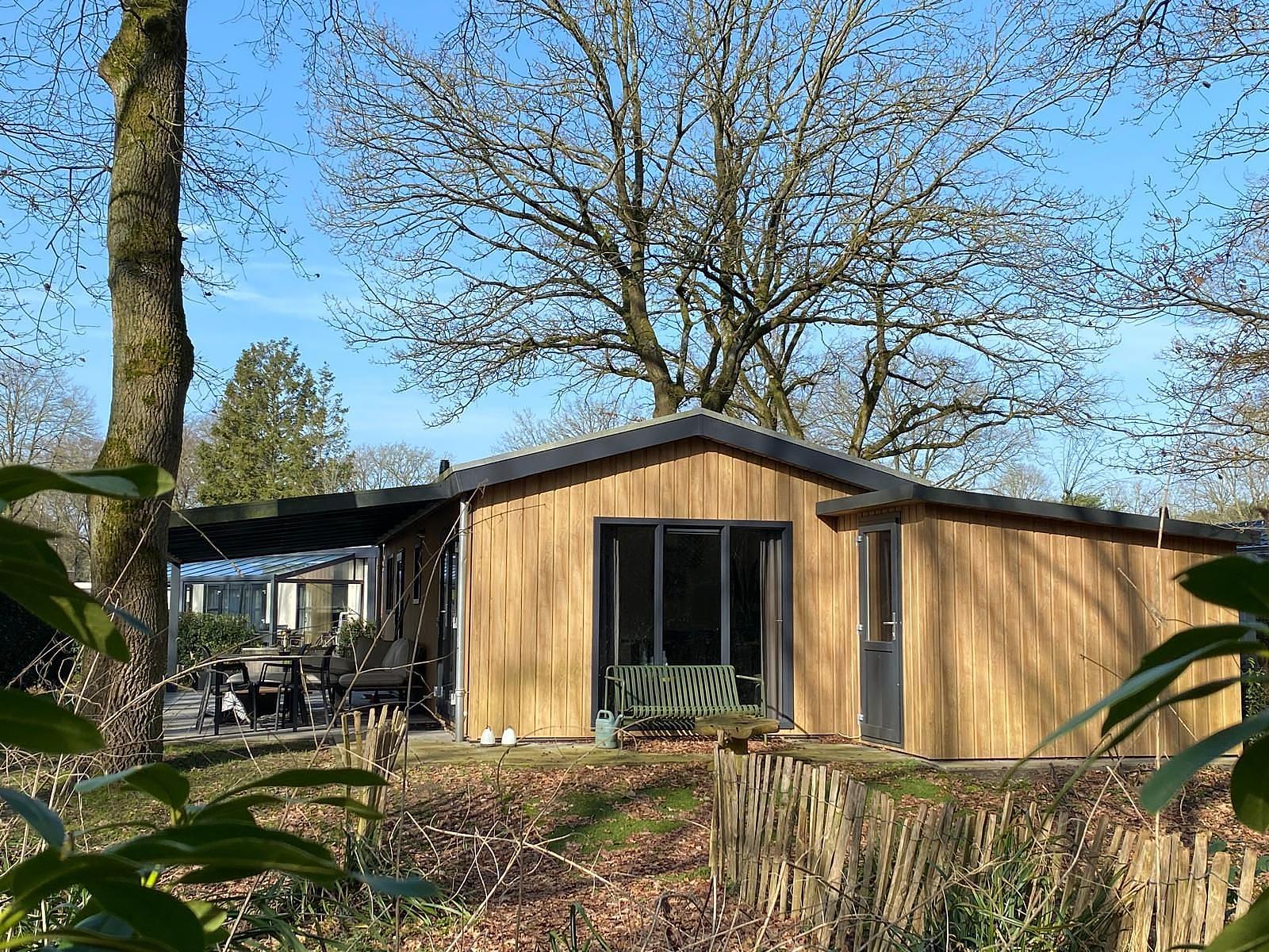 Op Vakantiepark De Ossenberg staat een goed onderhouden en compleet gemeubileerd vakantiehuis model 2023 te koop op een boskavel , waarvan je zo het Amerongse bos in loopt.