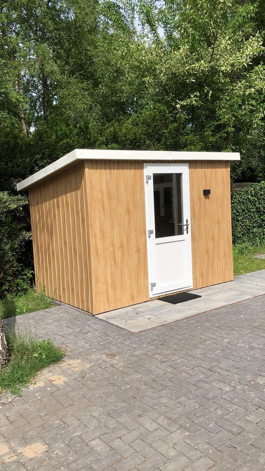 De mogelijk bestaat om voor een meerprijs een tuinhuis erbij te kopen ( zoals het tuinhuis dat op de foto is te zien .