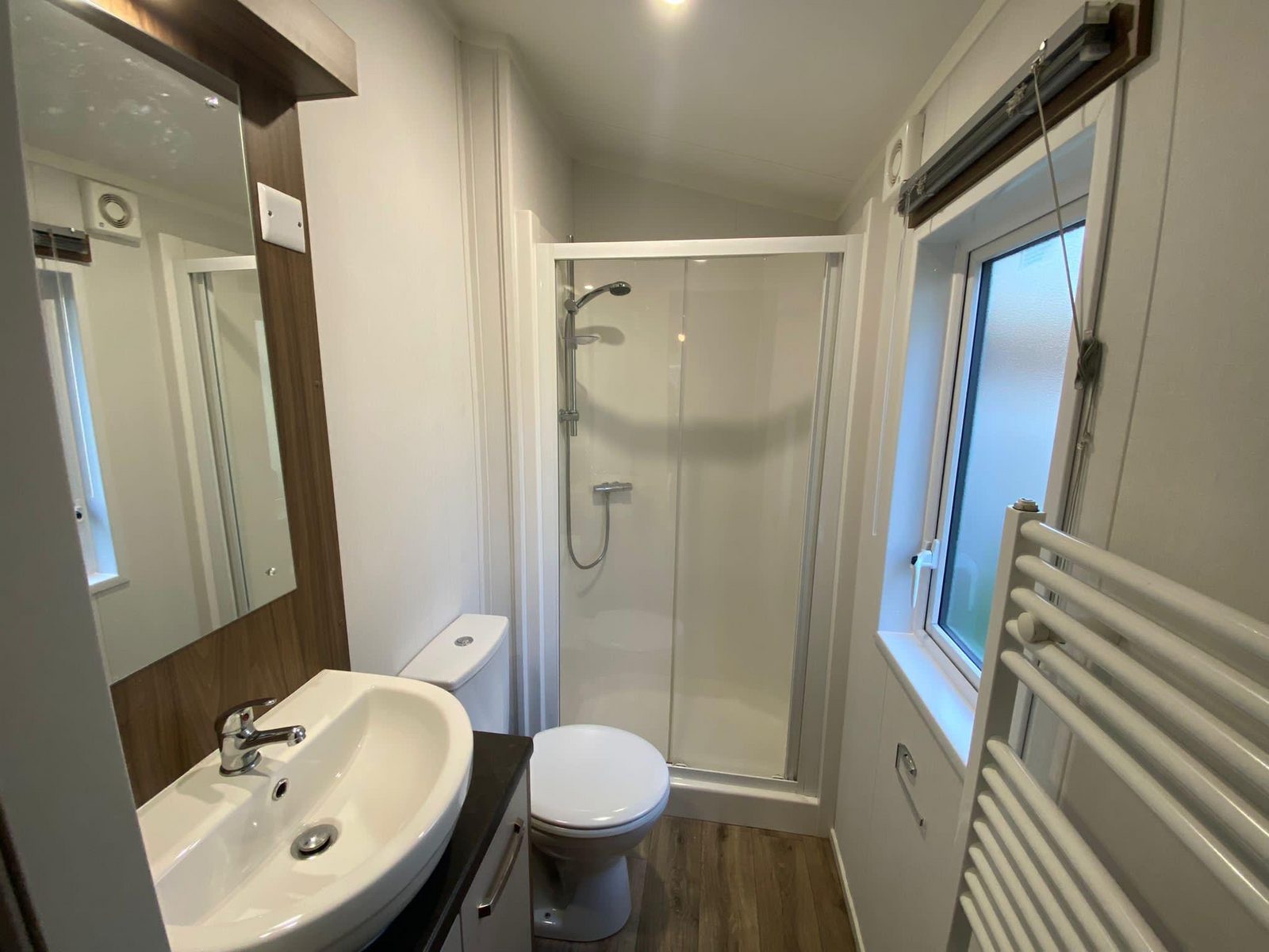 De ruime badkamer is onder andere voorzien van een ruime douche, zwevend toilet, een wastafel meubel inclusief spiegel en sfeerverlichting en een design radiator.