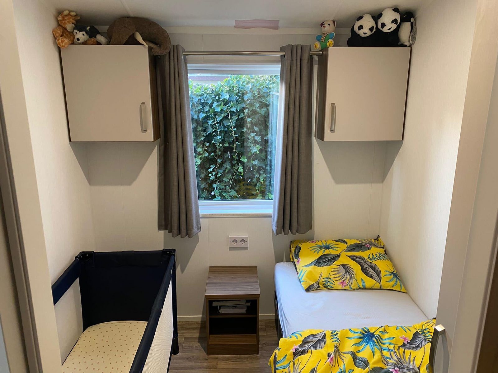 De gasten/kinder/werkkamer bied plaats aan bijvoorbeeld 2 éénpersoons bedden en er is opbergruimte voor bijvoorbeeld kleding of speelgoed.