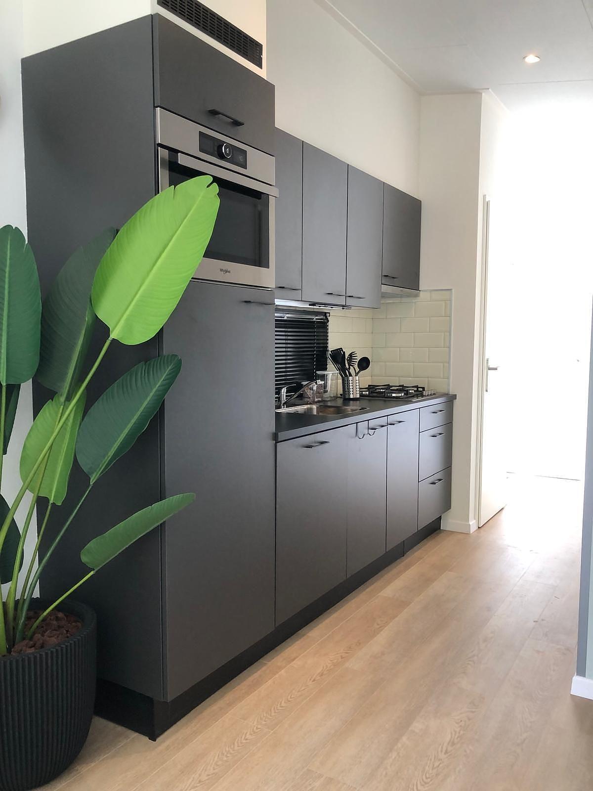 De luxe keuken is onder andere voorzien van : een combi magnetron ,vaatwasmaschine , kookplaat met verlichte afzuigkap, ruime koelkast met apart vriesvak en veel opberg en kast ruimte.