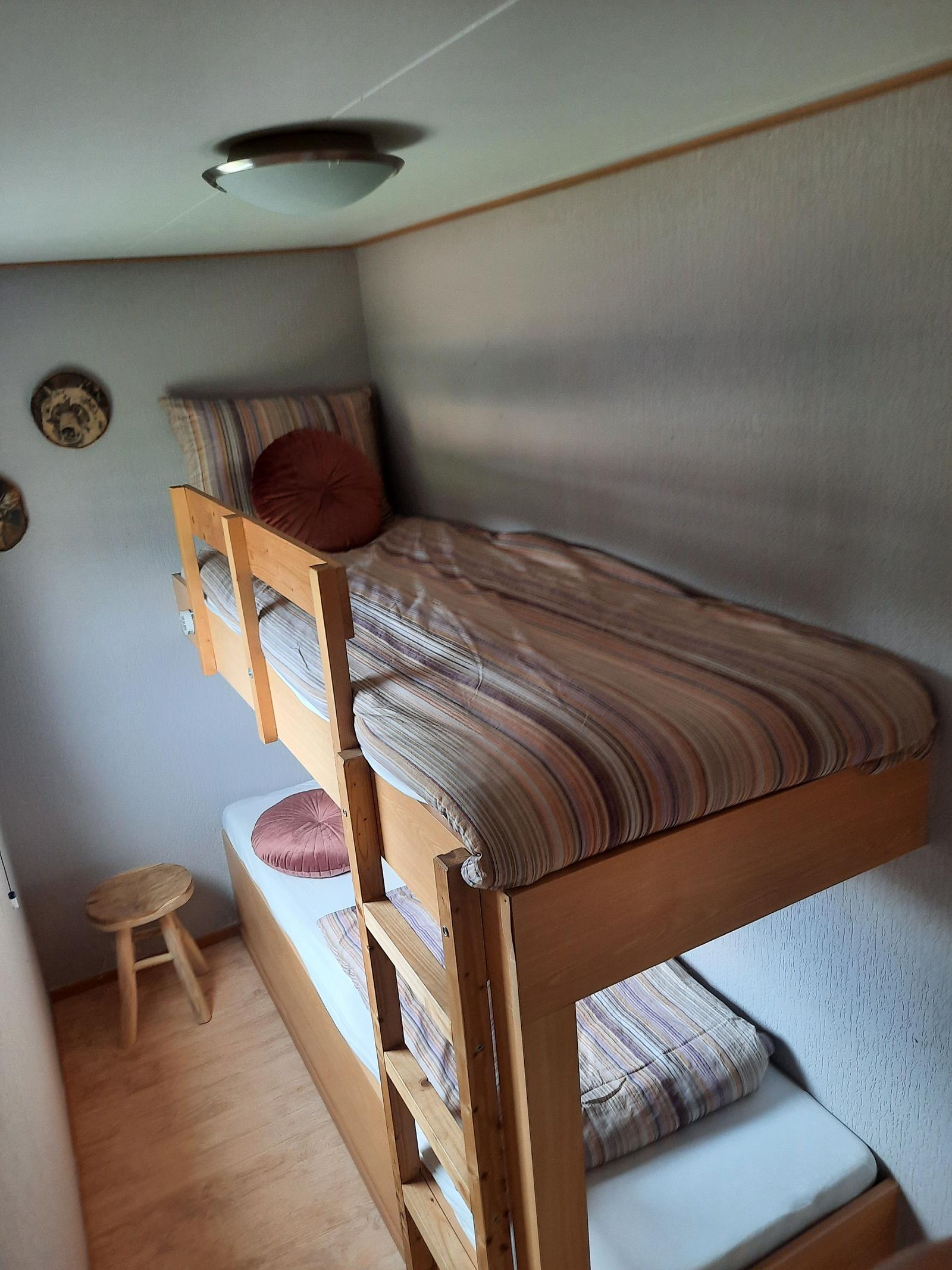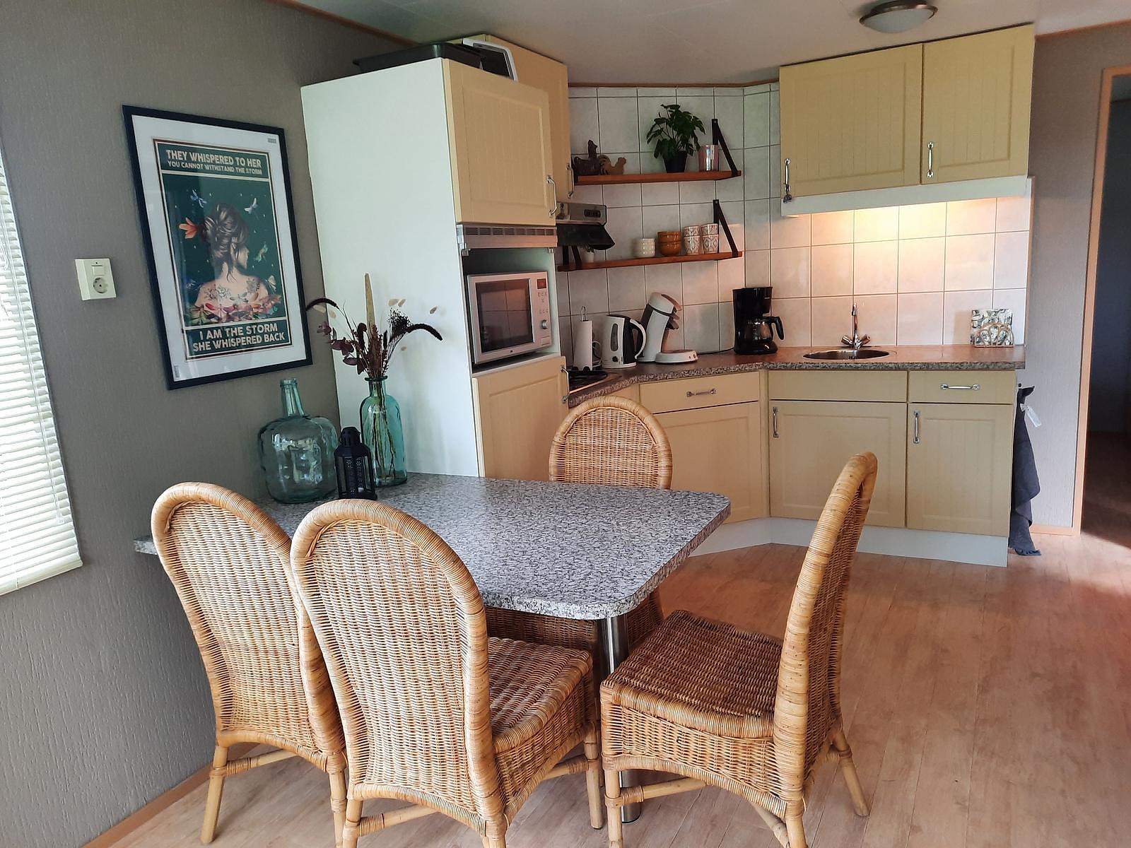 Entree/hal. Woonkamer, keuken met koelkast, 4- pits kookplaat en afzuigkap. 1e slaapkamer met tweepersoonsbed, 2e slaapkamer met stapelbed. Badkamer met douchecabine, wastafel, toiletkast. Separaat toilet. Verwarming middels gaskachel (2022), water middels cv ketel (2022). Rondom het chalet veel ruimte. Alle kamers zijn voorzien van laminaat, badkamer en toilet met plavuizen. Meerdere ramen voorzien van luxaflex. Schuurtje aanwezig. Eigen parkeerplaats op het perceel. Inclusief veel inboedel. Buitenzijde in 2025 geverfd.