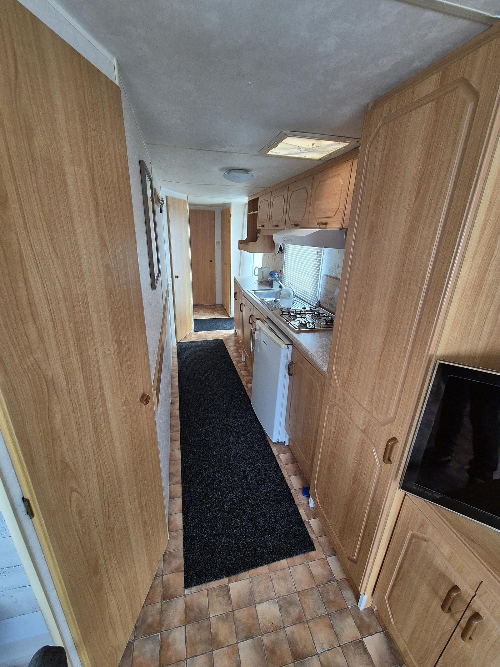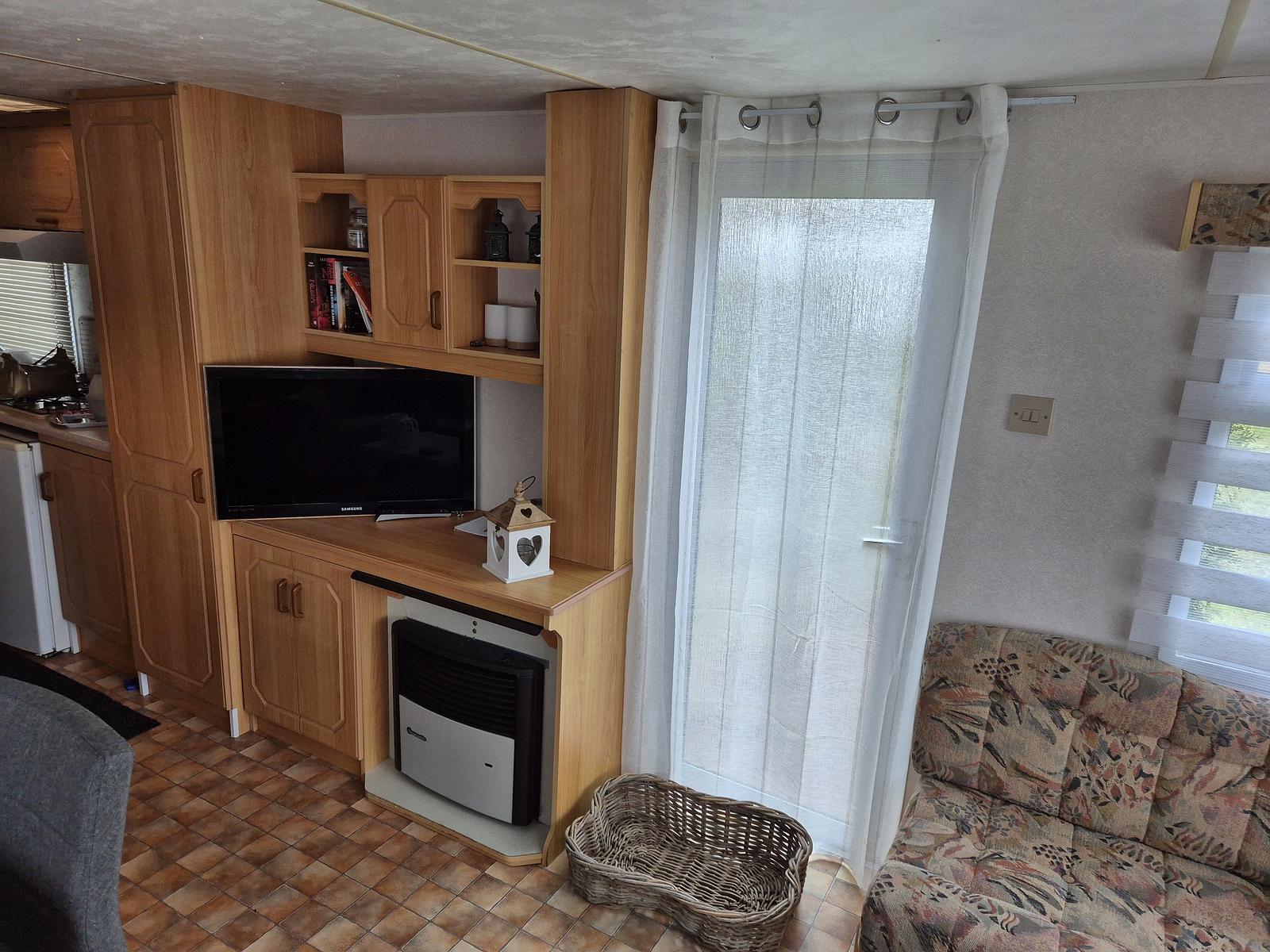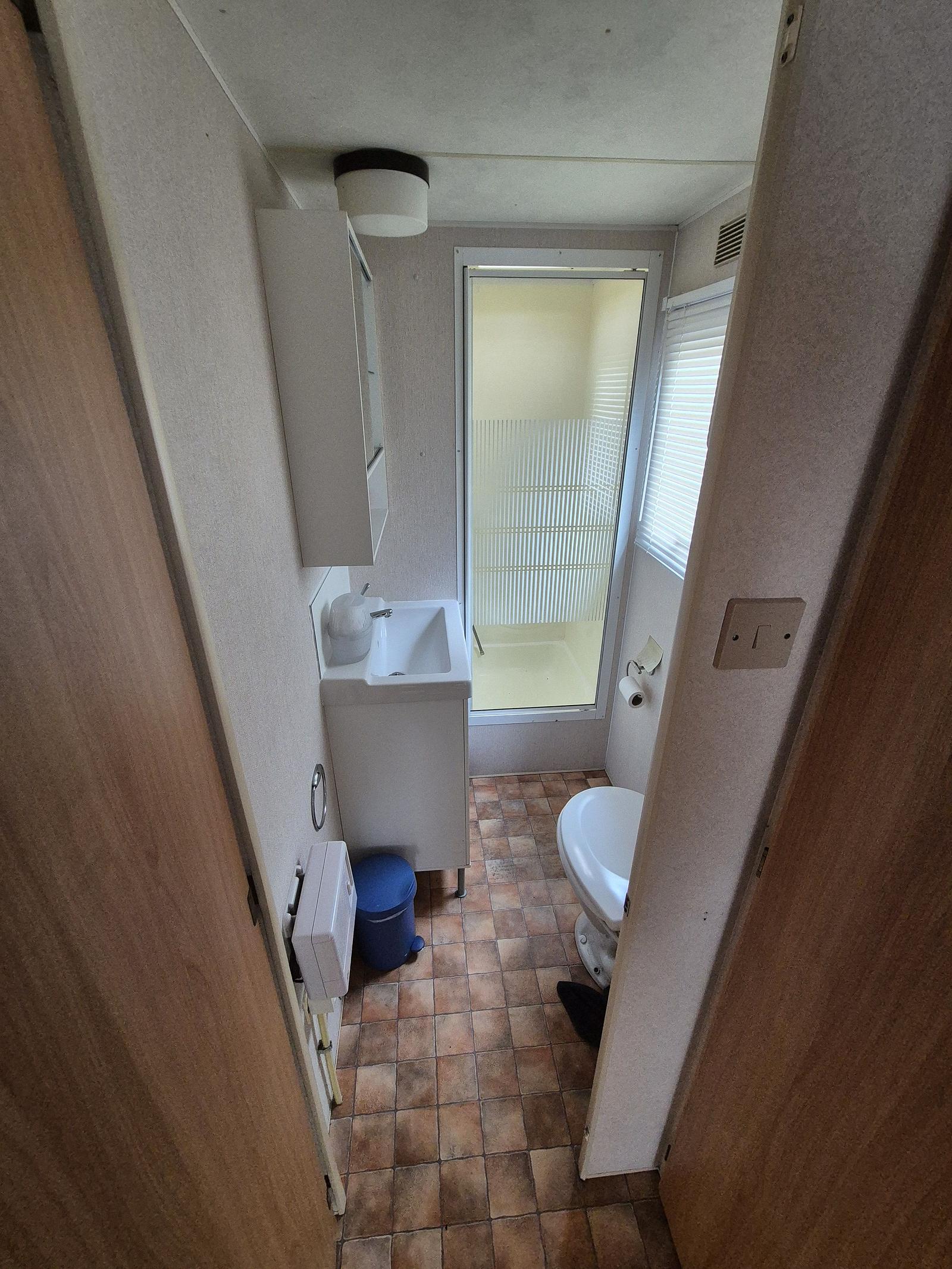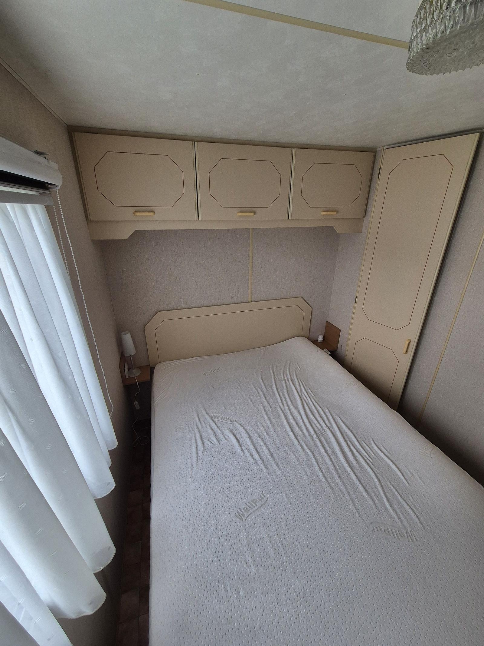 Indeling: Entree. Woonkamer met erker en een tuindeur naar het terras. Keuken met kookplaat, afzuigkap, spoelbak, koel-vries combinatie. Gaskachel aanwezig. Slaapkamer met tweepersoonsbed en vaste kastenwand. 2 slaapkamers met een stapelbed. Badkamer met douchecabine, toilet en badmeubel. Tuinhuisje met aansluiting voor wasmachine aanwezig. Gedeeltelijk omheind. Het hele chalet is voorzien van een vinylvloer. Veel ramen zijn voorzien van duorollers. Merk: Atlas