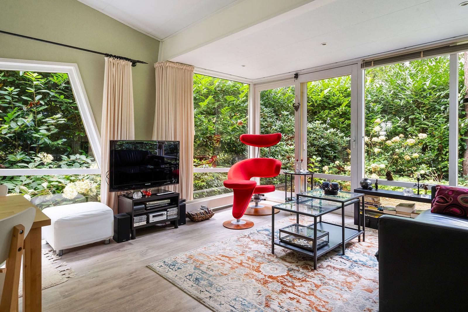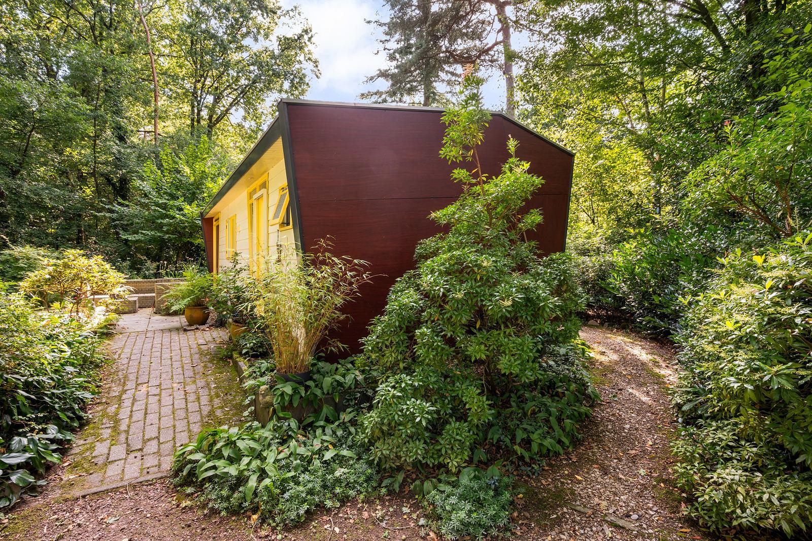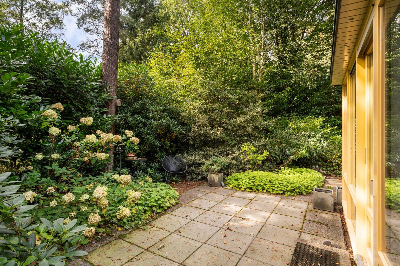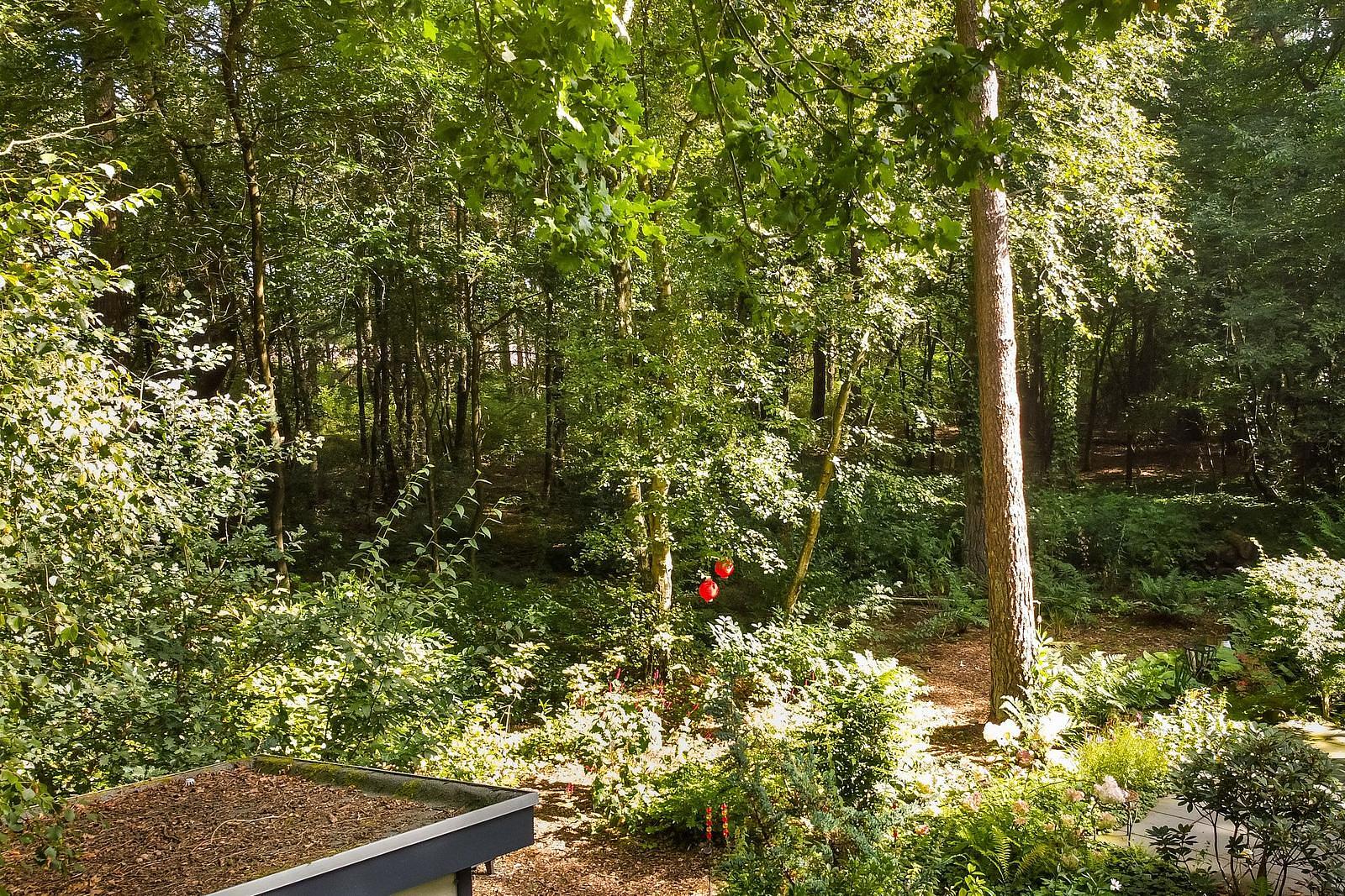 Via de schuifpui komt men in de tuin met verschillende terrassen. De ligging is uniek met veel groen en bos om de woning maar ook nog voldoen zon plekken. Zicht vanauit het chalet is fenomenaal te nomen, dit is recreëren pur sang.