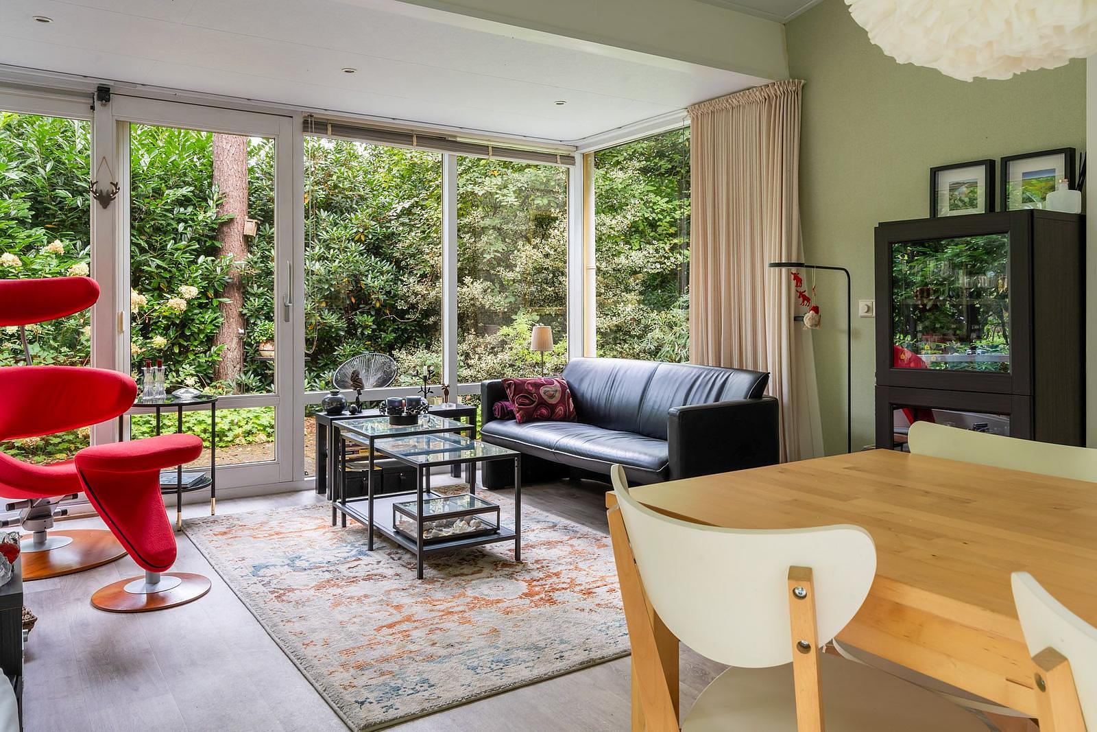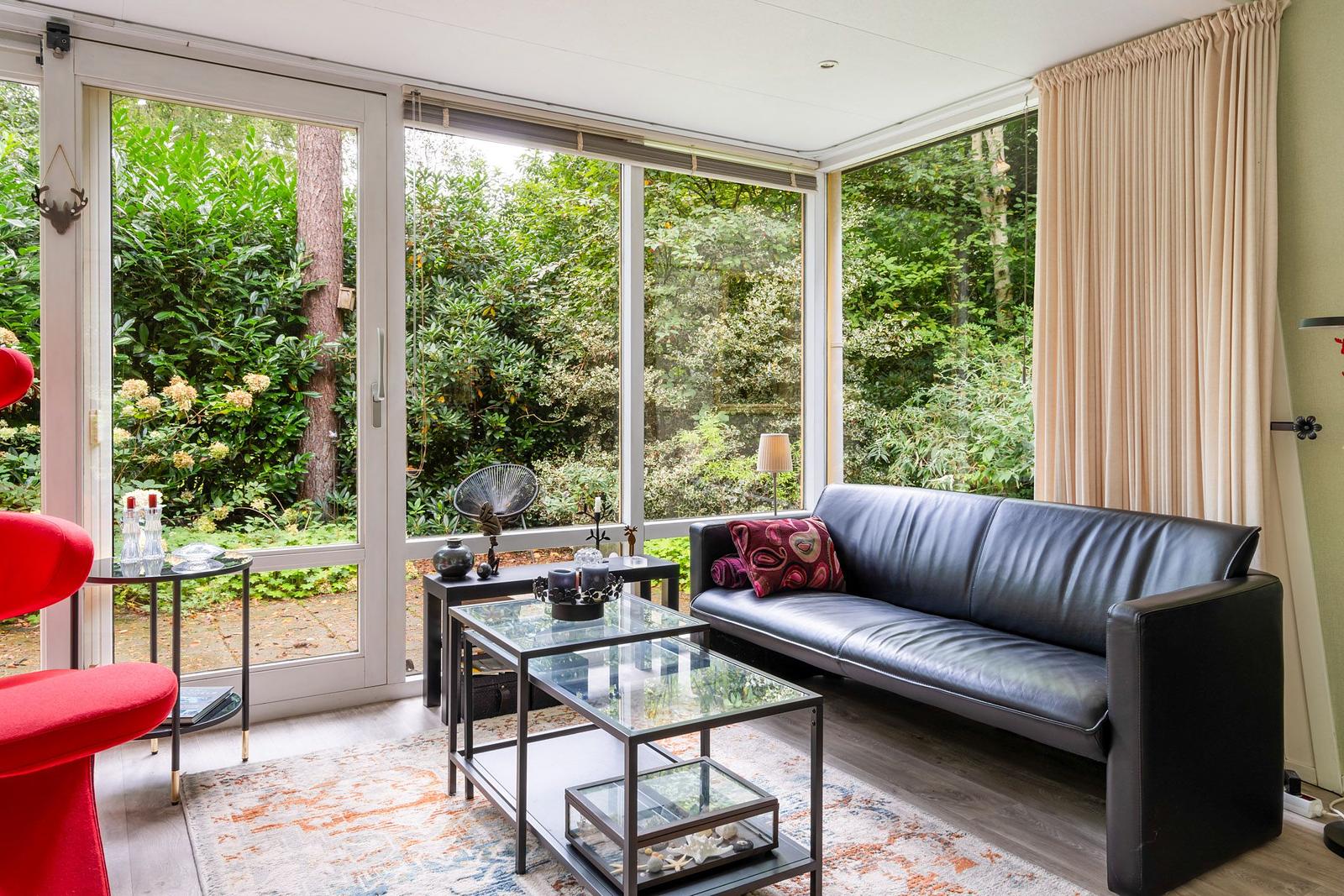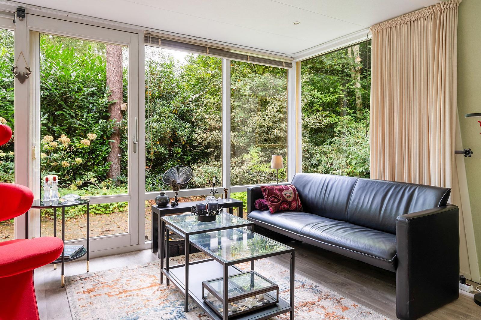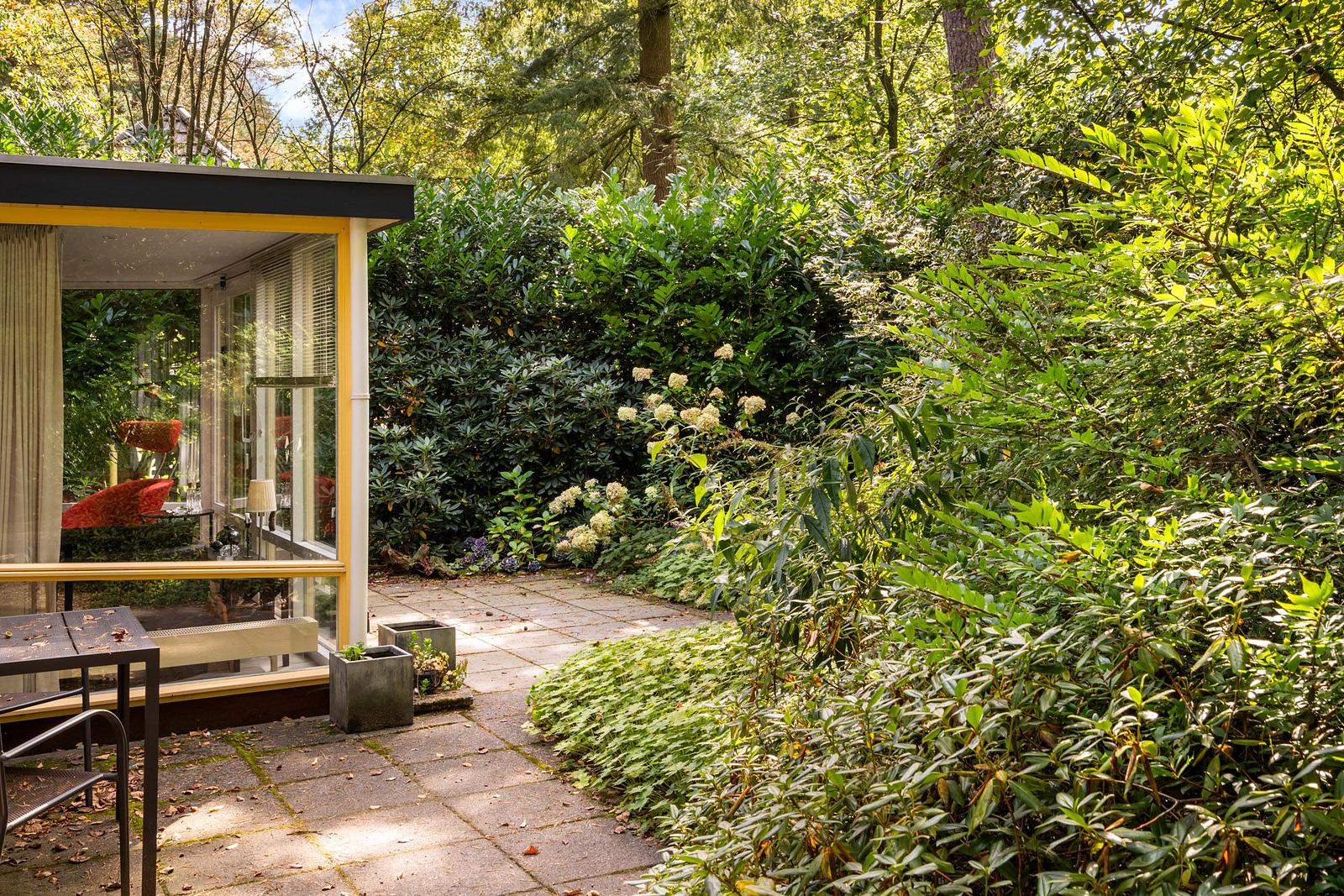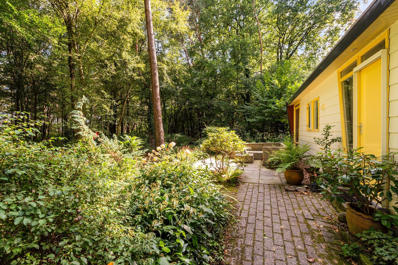 Via de schuifpui komt men in de tuin met verschillende terrassen. De ligging is uniek met veel groen en bos om de woning maar ook nog voldoen zon plekken. Zicht vanauit het chalet is fenomenaal te nomen, dit is recreëren pur sang.