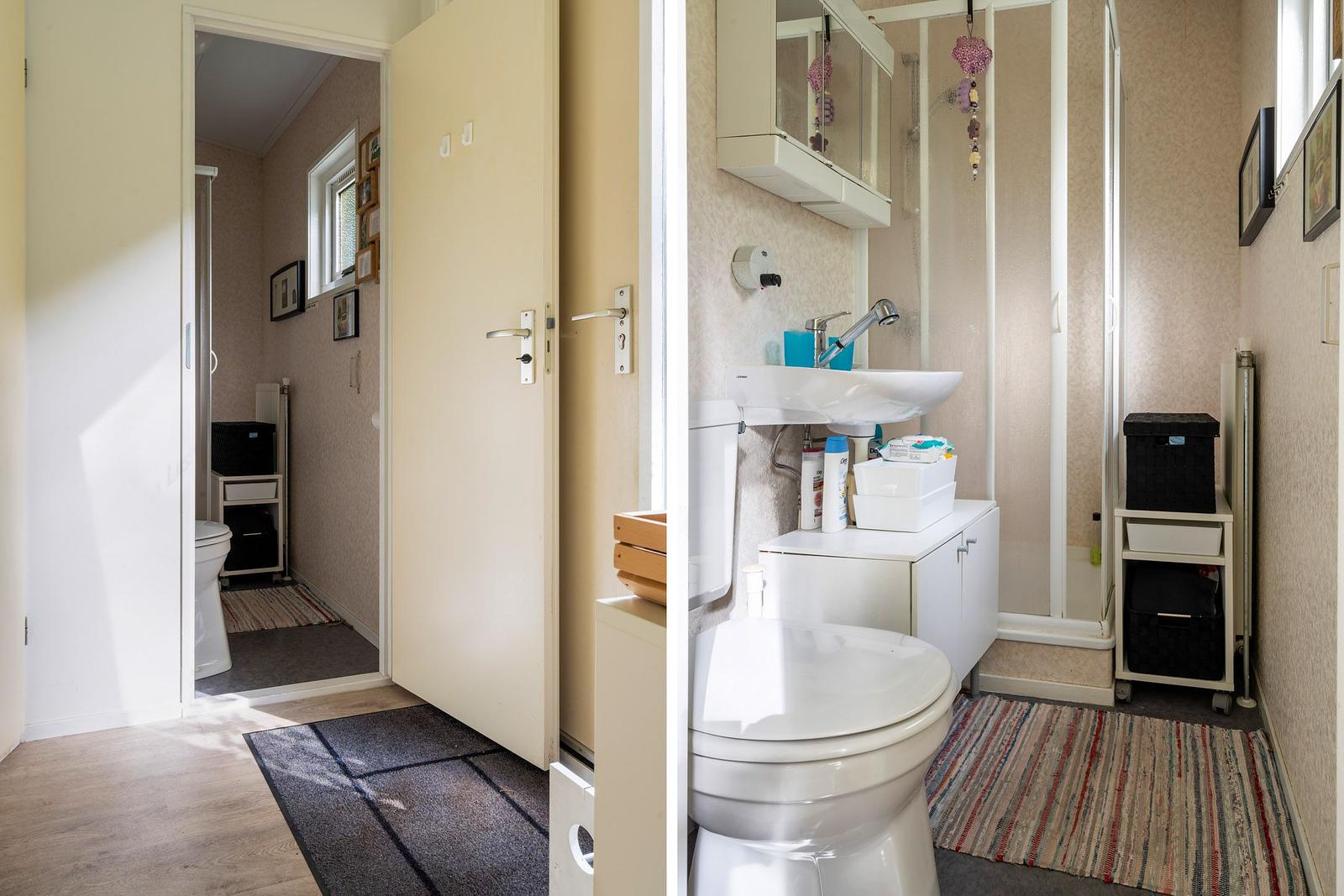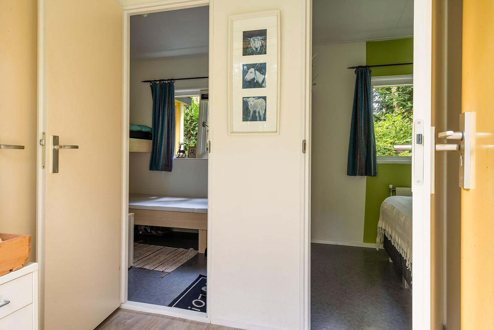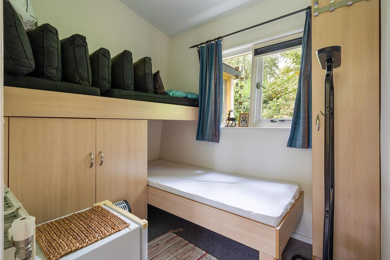 2 slaapkamers waarvan 1 met 2 persoons bed en 2e slaapkamer met 2 losse bedden schuin boven elkaar. Badkamer is voorzien van douchecabine, wastafel en radiator.