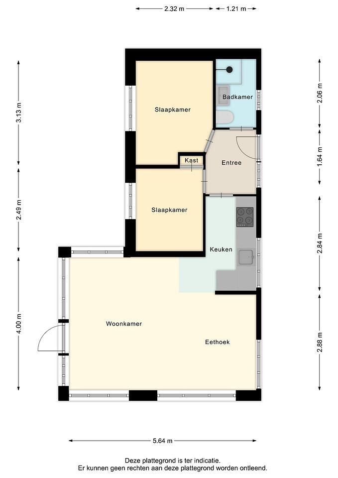 2 slaapkamers , 1 badkamer en 1 toilet.