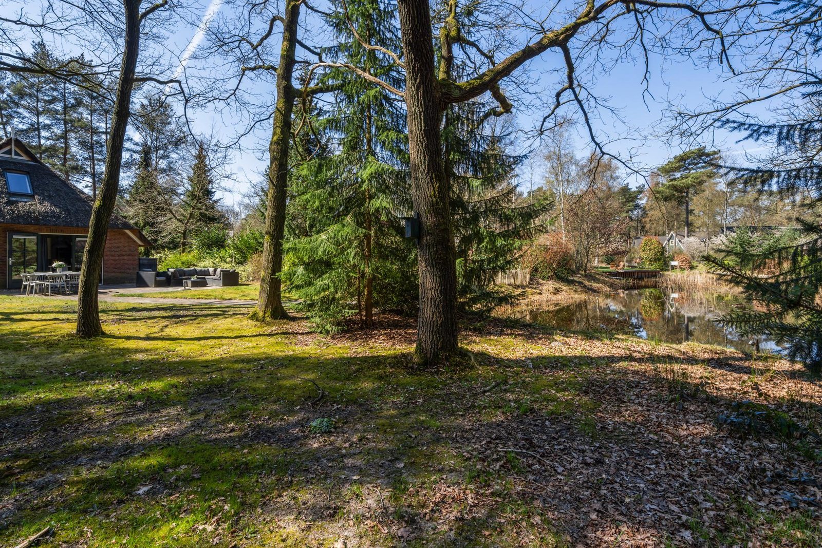 De zeer royale tuin , gelegen aan de vijver maakt het plaatje compleet. De woning heeft een eigen oprit ligt aan het bos en heeft een berging van 3 x 2 meter voor fietsen en tuingereedschap.