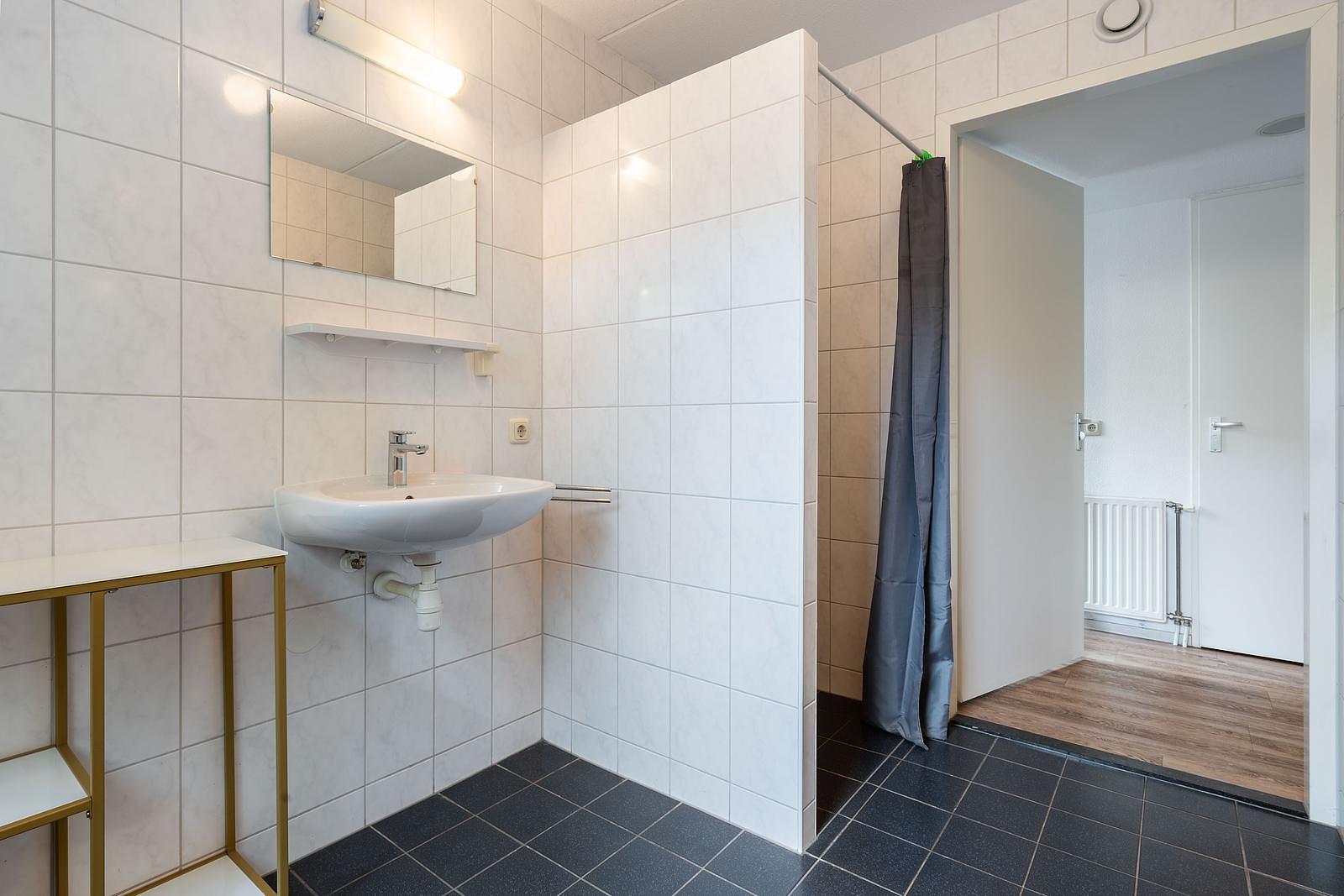 Ruime hal met toegang tot: royale badkamer met bad, wastafel en inloopdouche. Slaapkamer op de begane grond inclusief kasten, bedden en nachtkastjes. De gehele woning is voorzien van pvc-vloeren. De woonkamer is ruim met luxe open keuken. De keuken is met koelkast met vriesvak, combi magnetron, vaatwasser en gasfornuis met afzuigkap.