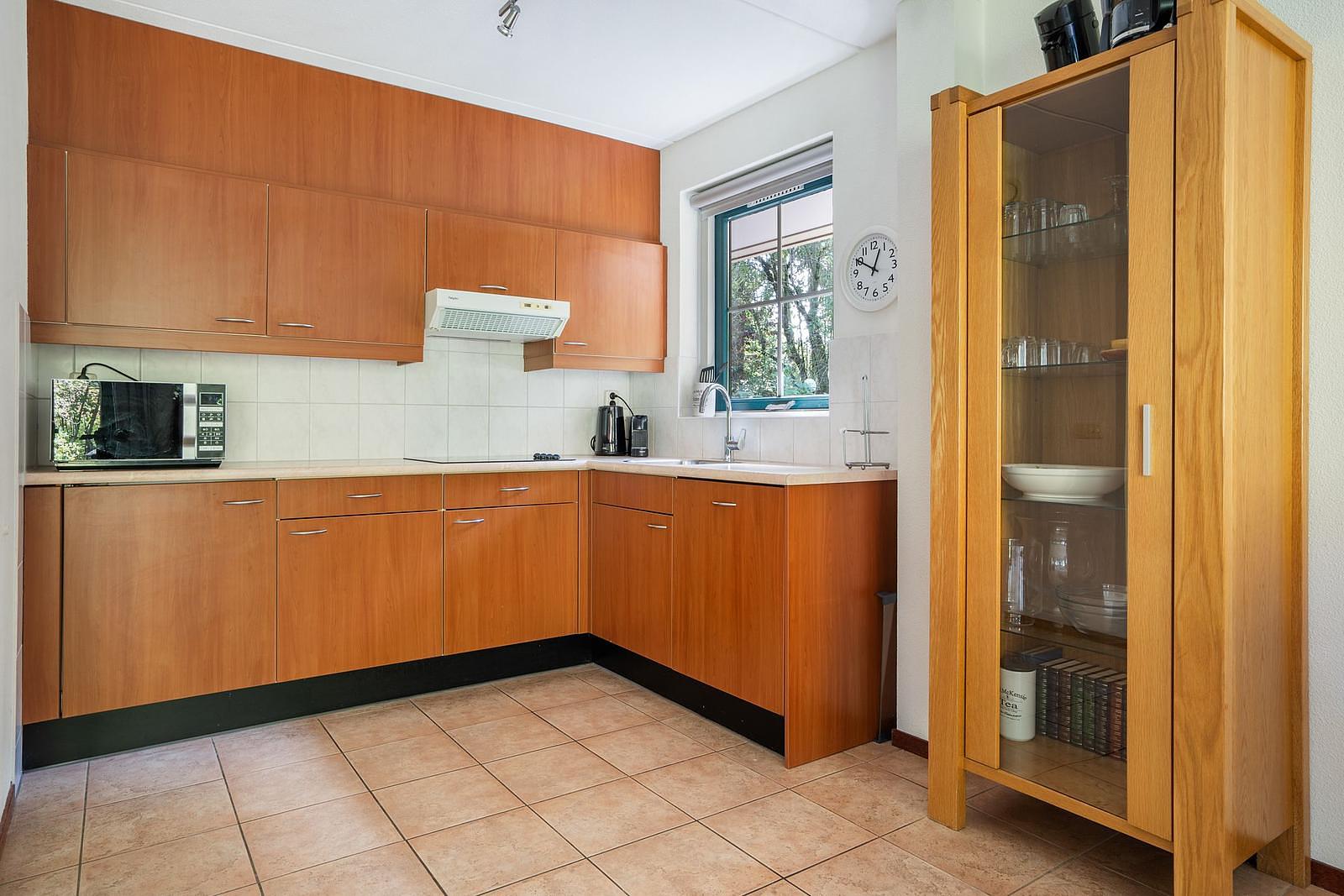 De keuken is van alle gemakken voorzien met een gasfornuis, afzuigkap, vaatwasser, combimagnetron en koelkast. Via de openslaande deuren stap je direct vanuit de woonkamer het terras op – perfect om te genieten van lange zomerse avonden.