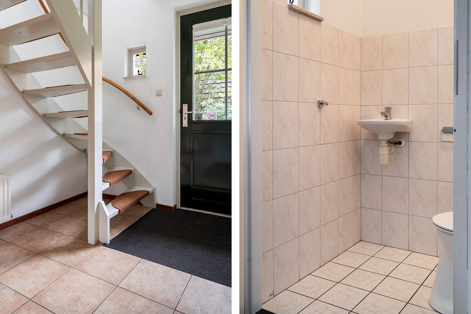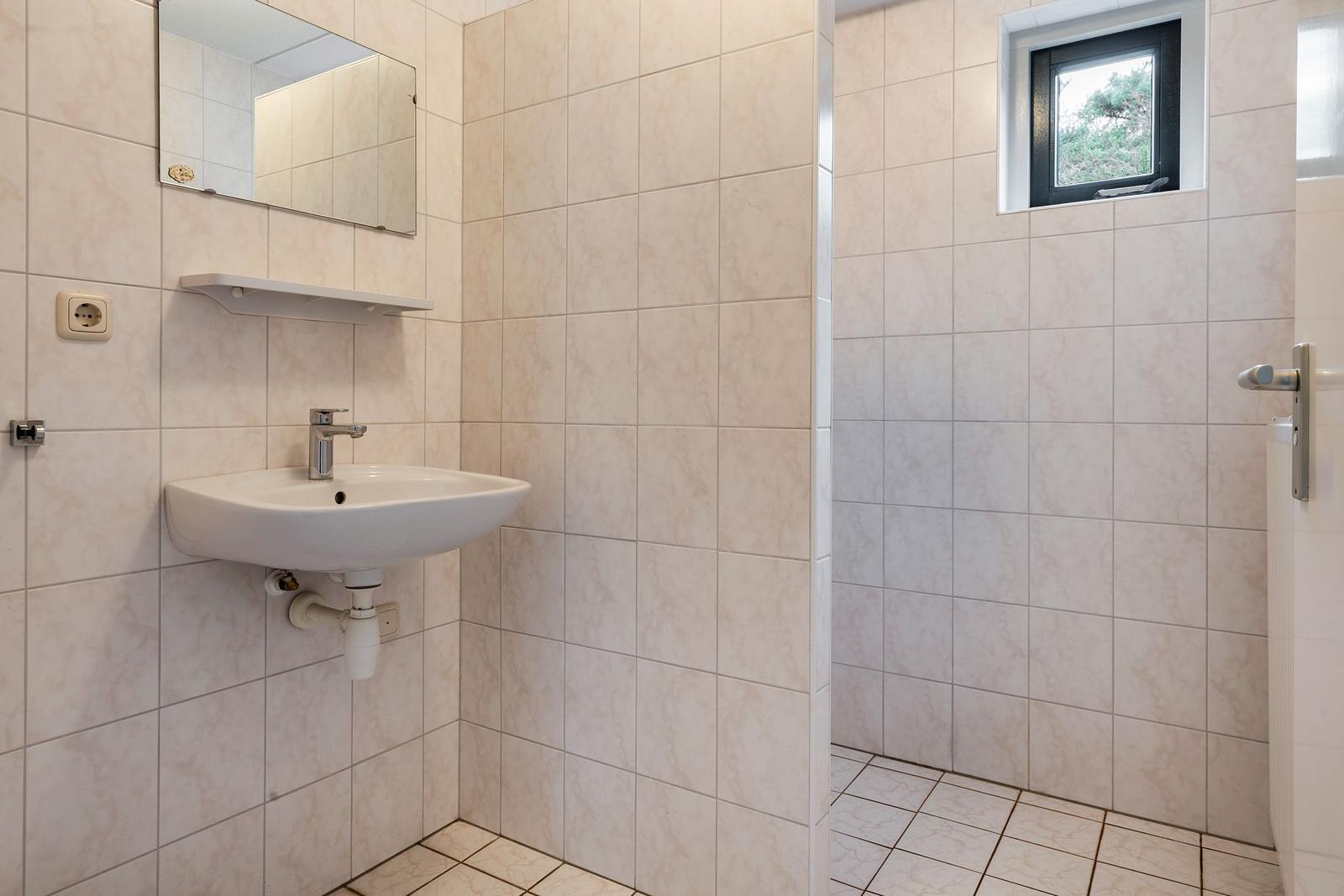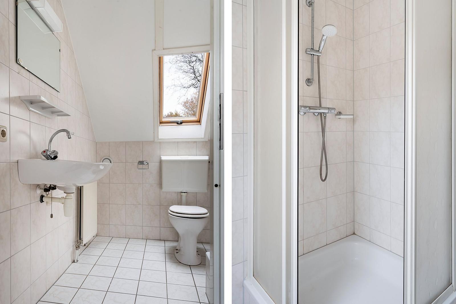 De woning beschikt over drie ruime slaapkamers, waarvan één op de begane grond met een eigen badkamer – ideaal voor gasten of minder mobiele gebruikers, met douche en wastafel. Op de bovenverdieping bevinden zich nog twee slaapkamers en een tweede badkamer met douchecabine, toilet en wastafel.