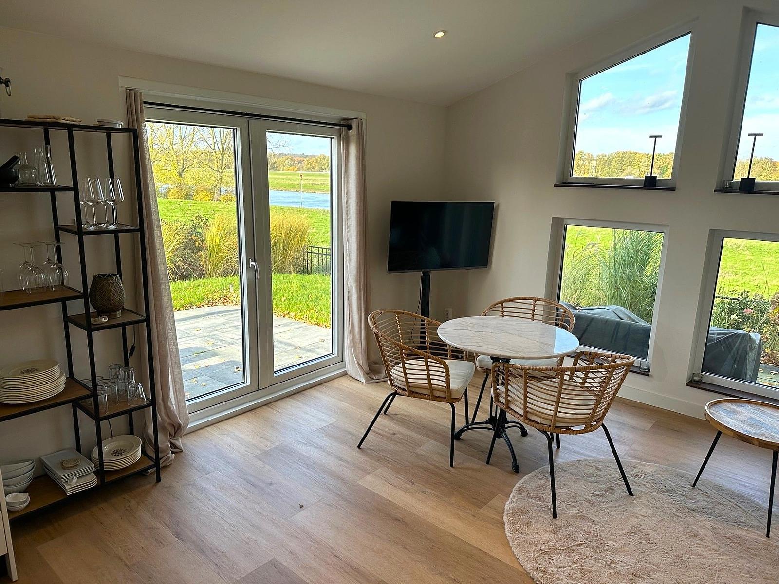 Het vakantiehuis beschikt over een royale woonkamer met een open eet en woon gedeelte. De vele grote raampartijen geven u een extra ruimtelijk gevoel en natuurlijk een prachtig mooi uitzicht over de IJssel. Doormiddel van dubbel openslaande terrasdeuren loopt u zo vanuit de woonkamer uw terras op waar u heerlijk kunt genieten van uw eigen plekje onder de zon.