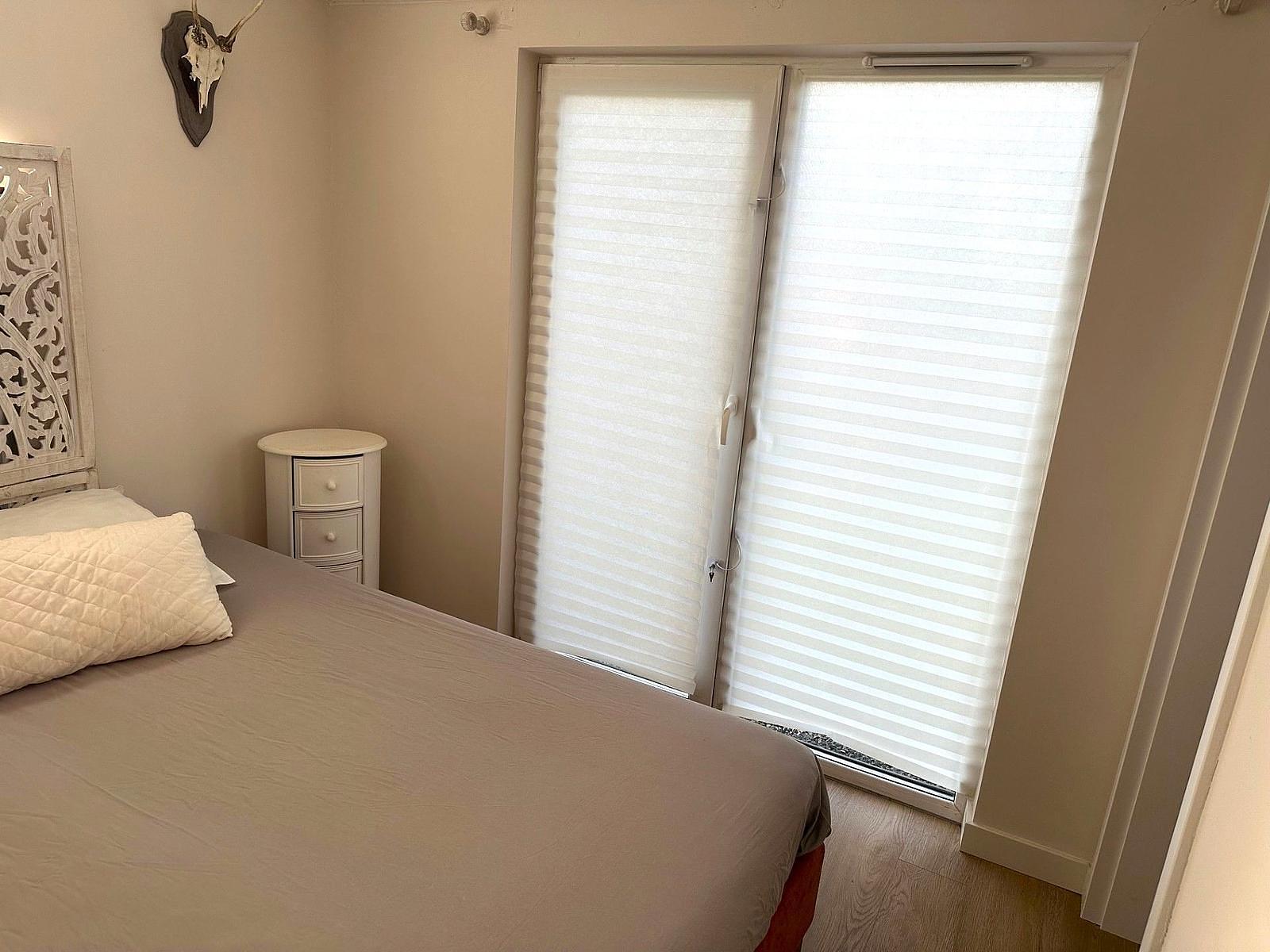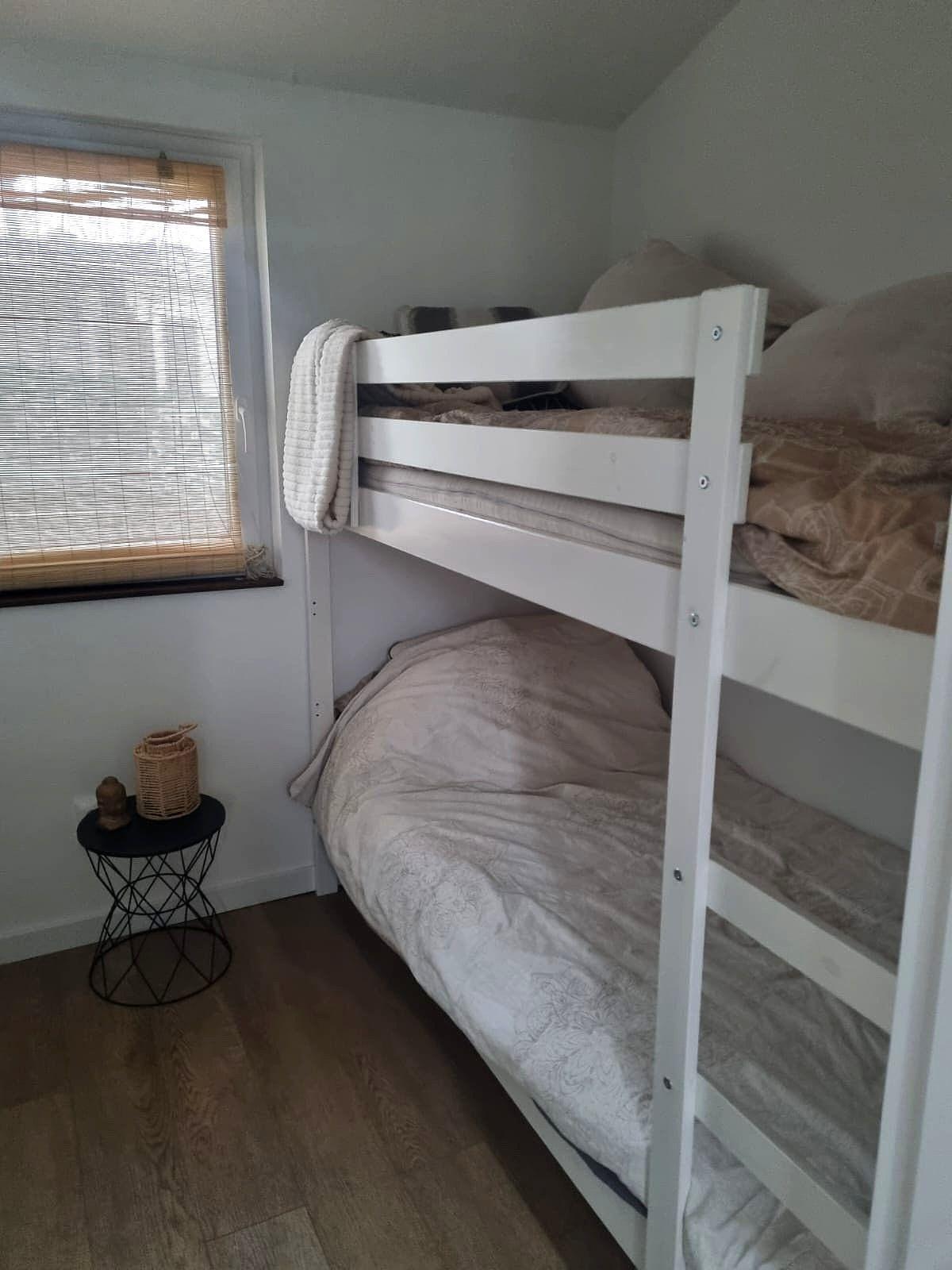 Het vakantiehuis heeft 2 ruime slaapkamers waarvan 1 met een tweepersoonsbed en inbouwkasten met schuifdeuren. De tweede slaapkamer is voorzien van een stapelbed en een inbouwkast met schuifdeuren.