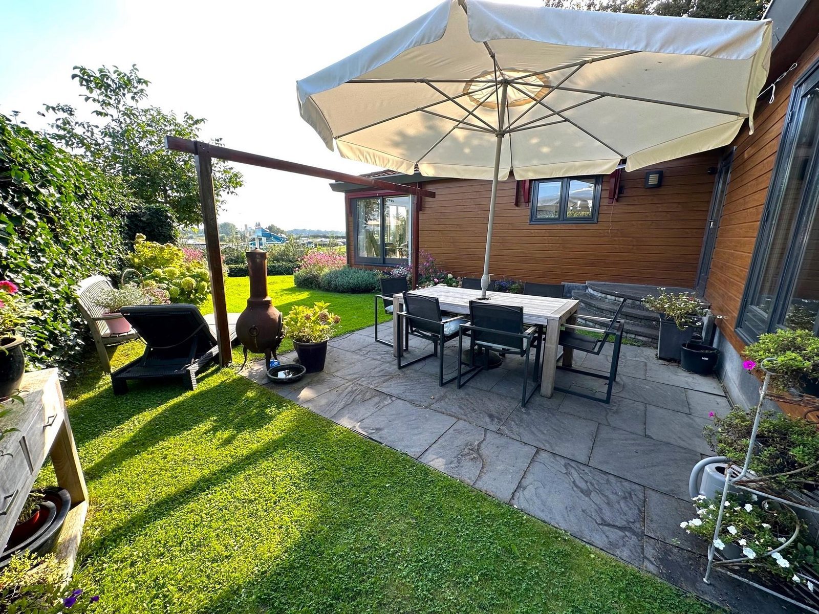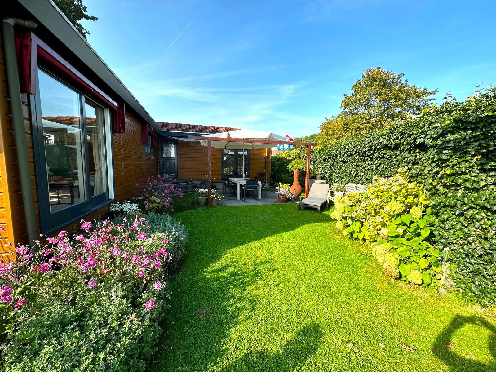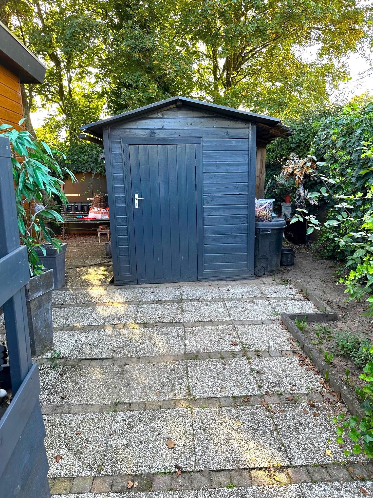 De zeer royale tuin heeft een betegeld terras, een grasveld en veel mooie gekleurde planten zodat u uw eigen groene oase heeft. Rondom de tuin is er een hoge heg die voor veel privacy zorgt. In de hoek van de kavel staat er een grote tuinhuis waar u fietsen of spullen in kunt opslaan. Achter het huis zijn er parkeerplaatsen.